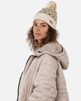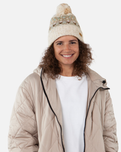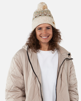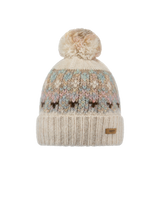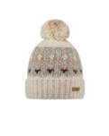 Stay cozy and stylish with the Barts Women's Renaa Beanie in Cream. This knitted beanie features a charming Aztec pattern and a vibrant multi-coloured pom for a playful touch. The fleece-lined headband provides extra warmth and comfort, perfect for chilly days.