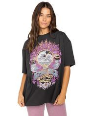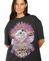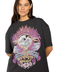 Embrace effortless style with the Billabong Women's Natural Mystic T-Shirt in Off Black. Crafted from 100% cotton jersey fabric, this short sleeve tee ensures a soft, comfortable feel all day long. The loose fit and classic crew neck design provide a relaxed silhouette, perfect for any casual occasion. Featuring a vibrant graphic print in soft-hand ink, this tee adds a touch of personality to your look. Whether you're pairing it with jeans, shorts, or a skirt, the Natural Mystic T-Shirt offers a versatile and stylish addition to your wardrobe, making it ideal for expressing your laid-back, chic vibe.
