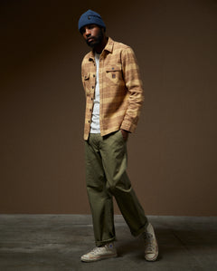 Bowery Heavyweight Flannel Shirt in Curry Yellow & Pinecone Brown