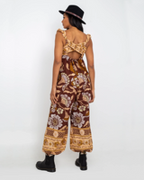 The back cutout detail provides an alluring twist, showing just the right amount of skin. Banded hemlines add structure and style to the outfit, making it perfect for various occasions. But what truly sets this jumpsuit apart is its mixed vintage-inspired paisley print, which adds a dash of bohemian flair to your ensemble.