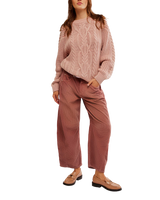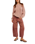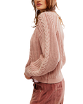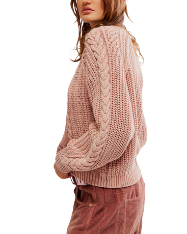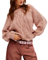 A cosy knit sweater Free People’s Women's Frankie Cable Jumper in Misty Rose is made from 100% cotton, offering a soft and breathable feel. This jumper features a beautiful misty rose hue, adding a touch of elegance to your wardrobe. Designed with intricate cable knit detailing, it provides a textured and stylish look. The relaxed fit, crew neckline, and ribbed cuffs and hem ensure both comfort and a flattering silhouette. Perfect for layering or wearing on its own, this versatile sweater combines casual charm with sophisticated style, making it an ideal choice for any occasion.