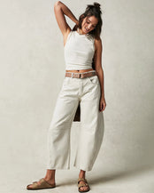 Introducing the Women's Good Luck Mid Rise Barrel Trousers in Milk from Free People. Crafted from 100% cotton woven denim, these trousers offer timeless style and comfort. With a mid-rise fit and barrel silhouette, they provide a flattering look suitable for numerous occasions. Embrace the versatility of the Milk wash, perfect for pairing with your favourite tops and shoes. Elevate your wardrobe with these chic and effortlessly stylish trousers, designed to inspire confidence and sophistication.