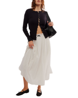 The Women's It's On Cardigan in Black from Free People is a versatile knit cardigan crafted from a blend of cotton and elastane, ensuring a soft and stretchy fit. This stylish cardigan features a timeless black hue, making it a perfect addition to any wardrobe. Designed with an open front, it drapes beautifully, providing a relaxed yet chic silhouette. The long sleeves and ribbed detailing at the cuffs and hem add a touch of elegance and structure. Ideal for layering over tops and dresses, this cardigan offers both comfort and effortless style, perfect for any occasion.