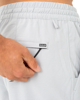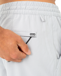 The Hurley Phantom Zuma II Volley Shorts in Stone Grey feature PHANTOM 4-way stretch ripstop fabric with a durable water-repellent coating, ensuring flexibility, resilience, and fast drying.