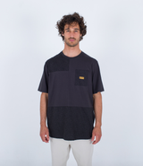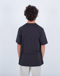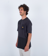 Hurley’s Men's Toledo Leopard Pocket T-Shirt in Black is made from midweight cotton jersey fabric, ensuring comfort and durability with its 100% cotton construction. It features side seam construction for a precise fit and a soft hand screenprint for a stylish look. The T-shirt includes a functional front pocket, Filipe Toledo custom back neck artwork, and an exclusive embroidered label. The One & Only woven label signifies its authenticity, while the interior boasts an exclusive panther print detail. This T-shirt effortlessly combines practicality and unique design elements, making it a perfect addition to any casual wardrobe.