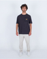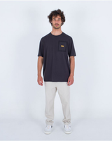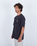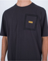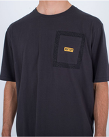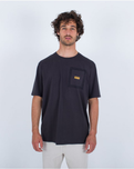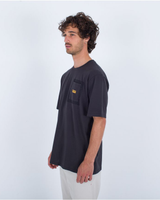 The Hurley Men's Toledo Pocket T-Shirt in Black offers a blend of comfort and style with its midweight cotton jersey fabric, made from 100% cotton. The side seam construction ensures a tailored fit, while the soft hand screenprint adds a premium touch. Featuring a convenient front pocket, this t-shirt stands out with Filipe Toledo custom back neck artwork and an exclusive embroidered label. The One & Only woven label signifies quality, and the exclusive panther print interior detail adds a unique flair. Perfect for everyday wear, the Toledo Pocket T-Shirt combines functionality with stylish details for a standout casual piece.