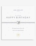 The Ladies Joma Jewellery Little Birthday Bracelet in Silver is the perfect gift for the birthday girl. This silver-plated treasure is detailed with a meaningful charm, featuring a beautiful heart with a sparkling crystal centre attached to a stretchy 3mm silver ball bracelet. Designed to make gifting as fun and effortless as possible, the bracelet is wrapped around a stylised card to give your present that extra special touch. ‘This sparkly heart is just to say have a very Happy Birthday’.