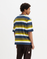 A durable tee inspired by traditional workwear Levi's® Men's Blocking Stripe Workwear T-Shirt in Spellbound features a classic crew neckline, this shirt is designed with a loose fit for comfort and ease of movement. Made from 100% cotton, it offers breathability and long-lasting wear. The tee is finished with Levi's® signature logo at the chest, adding a touch of iconic style.