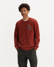 Introducing the Levi's® Mens Graphic Letterman Sweatshirt in Fired Brick. This cozy crewneck sweatshirt is crafted from 100% cotton for a super soft feel and all-day comfort. It features ribbed cuffs and hem for a secure, snug fit, and enhanced durability.