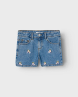 Introducing the Name It Girls Bella Denim Shorts in Medium Blue Denim, a must-have for your child's wardrobe.
