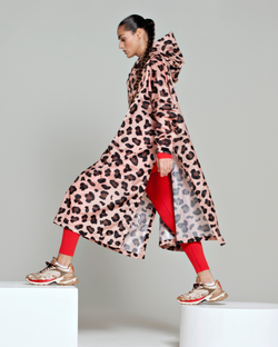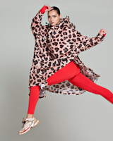 Introducing the Rain Poncho in Pink Panther from Rainkiss, a versatile solution for rainy days. One size fits all, offering convenience and ease of use. With a 7000mm waterproof column, it ensures exceptional dryness in any downpour. Precision-cut and crafted from certified recycled polyester, it combines durability with sustainability. Effortlessly foldable with a built-in storage pouch, it's perfect for on-the-go lifestyles. The premium Velcro cuff closure features QR codes for instant access to weather updates and curated Spotify playlists. Adjustable hood and two-button side panel adjustment cater to various activities, making it ideal for cyclists and adventurers alike.