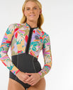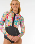 The Rip Curl Womens G-Bomb 1.5mm Long Sleeve Front Zip Spring Wetsuit in Charcoal Grey