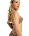 Elevate your beach vibes with the Roxy Lasca Bralette Tri Bikini Top in Deep Taupe.