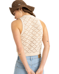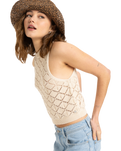 The Roxy Women’s Tropic Sky Vest in Parchment is a perfect blend of elegance and casual charm.