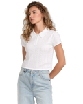 The RVCA Womens Dawn Sweater Top in Whisper White is a versatile essential that effortlessly transitions from day to night.