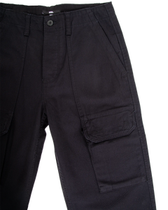 Featuring front and back patch pockets, these cargo trousers add practical storage and a touch of utilitarian chic. The classic black colour makes them versatile for pairing with various tops and shoes, making these trousers a stylish and practical addition to any wardrobe.