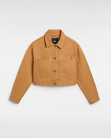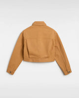 The Vans Girls Raynes Crop Trucker Jacket in Brown Sugar offers a chic and trendy update to a classic silhouette. Made from 100% cotton, this piece-dyed twill jacket is both durable and comfortable. The cropped design provides a modern touch, while the back pleat detail adds a hint of sophistication.