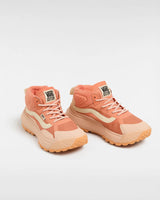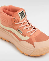 The Vans Women's MTE Crosspath Mid Shoes in Terra Cotta are designed for sustainability and performance. Featuring DWR-coated 100% recycled PET textile uppers with Rapidweld™ details, these shoes offer durability and water resistance.