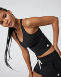 Introducing the Vuori Halo Performance Crop Vest 2.0 in Black Heather, now with an enhanced fit for even better wearability.