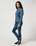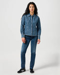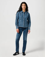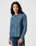 Introducing the Wrangler Women’s Exag Yoke Shirt in Faded Blue, a perfect fusion of classic style and contemporary flair.