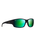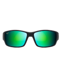 Introducing the Maui Jim Mens Local Kine Polarised Wrap Sunglasses in Soft Black with Dark Transparent Green & Light Transparent Grey - shades that are designed for ultimate sun protection and bold island style.