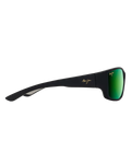 The Maui Jim Local Kine Polarised Wrap Sunglasses in Soft Black with Dark Transparent Green & Light Transparent Grey