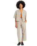 Designed with an elasticated crop fit, these trousers feature a comfortable elasticated waistband that sits just right for all-day ease. The wide leg design adds a touch of elegance and freedom of movement, creating a flattering silhouette that works for any occasion. Made from 100% cotton and treated with a simple garment wash, these trousers are soft to the touch and breathable, making them ideal for warm weather.