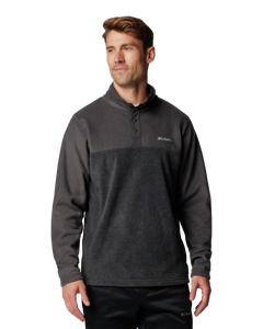 The Columbia Mens Steens Mountain Half Snap II Fleece Jacket in Charcoal Heather & Shark offers the perfect blend of warmth, comfort, and style.