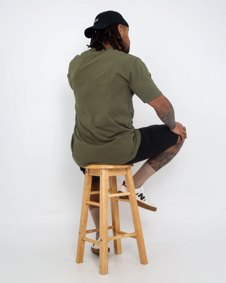 Features like neck ribbing, side seams, shoulder-to-shoulder tape, and double needle hems enhance its structure and longevity. Pre-shrunk fabric minimizes shrinkage, maintaining its shape wash after wash. Ideal for those seeking a reliable, well-constructed staple in a versatile army colour.