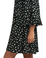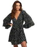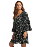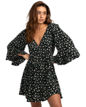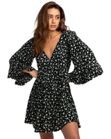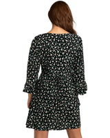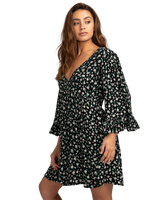 It’s summer dress season and the irresistible Billabong After Time Dress in Off Black is sure to be a popular choice for days or evenings out. It’s crafted with a soft and comfortable crinkle viscose fabric which allows your skin to breathe and stay cool when it’s warm outside. This babydoll style dress features a deep V neck design with ruffle detail at the tiered skirt. The dress is adorned with a pretty floral print, perfect for the summer.