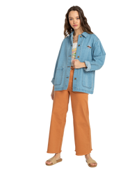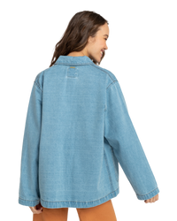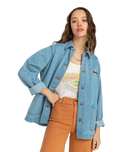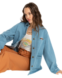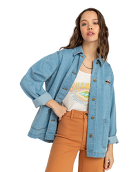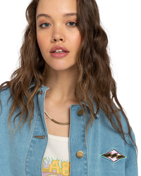 Introducing the Billabong Endless Night Jacket, a women's denim trucker style jacket that effortlessly combines classic style and comfort for your everyday adventures.