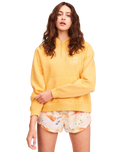 Billabong’s Morning Surf Hoodie in Marigold combines comfort and style with its relaxed fit and soft French terry fabric, ideal for casual wear or layering after a morning surf. The pigment garment dye gives the hoodie a unique, lived-in look, while the smart graphic design on the left chest adds a subtle yet distinctive touch.