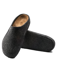 The Birkenstock Zermatt is perfect for all year round! The Standard Footbed replicates the natural print made by a foot walking on sand and will see you through the day in comfort. The upper is made from soft wool felt. The wool felt upper adds a cosy and luxurious feel, while the suede footbed lining adds an extra touch of softness. The latex sole offers flexibility and durability, ensuring long-lasting wear. With its clog design featuring an extended shaft, decorative stitching, and a decorative rivet, these slippers showcase both elegance and craftsmanship. Designed with a regular fit, you can be sure of a comfortable and secure fit for everyday wear. Treat your feet to the ultimate relaxation experience with the Zermatt Slipper from Birkenstock.