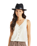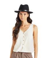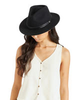 Add a touch of timeless elegance to your look with the Women's Messer Fedora in Black from Brixton. This classic fedora is beautifully designed with a wide brim, perfect for adding sophistication to any outfit.