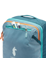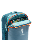The standout feature is Cotopaxi’s use of 100% recycled fabrics, now more durable than ever. While retaining all the beloved features of their bestselling packs, Cotopaxi has introduced several game-changing updates. These include air mesh shoulder straps for exceptional comfort, improved weight distribution, a new exterior stretch water bottle pocket, and a luggage pass-through strap that effortlessly slides over the handle of a roller bag (like the Allpa Roller Bags).