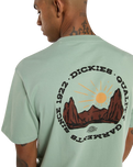 Head out into the wild in authentic style with the Mens Dickies Outdoor T-Shirt in Iceberg Green, the perfect blend of comfort and vintage inspired style.