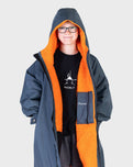 The Dryrobe Kids Advance Long Sleeved in Charcoal Grey & Orange