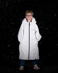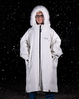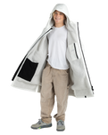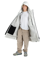 Introducing the Kids Advance Long Sleeved Snow in White & Grey from Dryrobe®, where warmth meets style.
