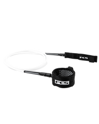 From mellow waves to powerful ocean swells, the FCS Regular Essential 7’ Leash in White & Black is crafted to suit every surfing style and condition.