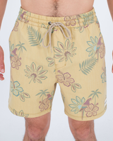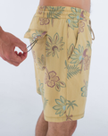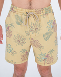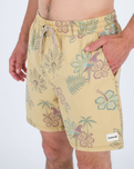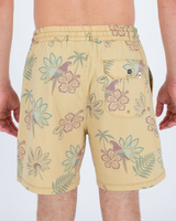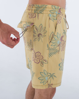 The Hurley Men's Phantom Naturals Cannonball Volley Shorts in Dusty Cheddar combine vintage style with modern performance. Crafted from a blend of cotton, recycled polyester, and spandex, these shorts feature Phantom Naturals fabric with a DWR coating for durability and quick drying. The 17” outseam with a straight leg offers a comfortable fit, while slash pockets with mesh bags ensure quick water drainage. The back pocket with Velcro and grosgrain pull provides secure storage. Accented with a Phantom heat transfer logo, an organic cotton One and Only patch, and an icon clip label, these shorts deliver both eco-friendly style and functionality.