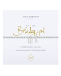 Make it a birthday to remember with the stunning Ladies Joma Jewellery Little Birthday Girl Bracelet in Silver. This silver-plated treasure is detailed with a meaningful charm, featuring a cute gift attached to a stretchy 3mm silver ball bracelet. Designed to make gifting as fun and effortless as possible, the bracelet is wrapped around a stylised card to give your present that extra special touch. ‘This little bracelet is just to say, hip hip hooray, you’re the birthday girl today’.