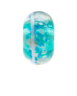 This captivating bead begins with a base of teal glass, evoking the stunning colour of the sea, and is encased in clear glass to add depth and dimension, capturing the serene beauty of the water. Tiny shards of handmade frit, symbolising the colourful boats that dot the bay, are carefully rolled into the bead.