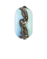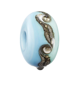 Crafted from two new specialty marble glasses in green and turquoise, the bead captures the vibrant colours of Tolcarne's cliffs and sea perfectly. An ivory and silver leaf stringer adds elegance, while fine silver wire is melted in and expertly twisted under intense heat to create a mesmerising wave pattern.
