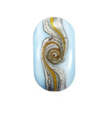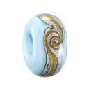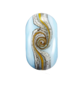 Crafted from a stunning turquoise marble glass, the bead reflects the foaming waves and fluffy clouds drifting across blue skies. A delicate stringer of ivory, silver leaf, and yellow is wrapped and melted into the design, symbolising the soft sand meeting the sea and sky.