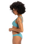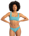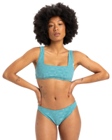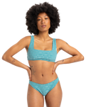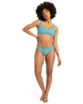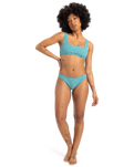 The Quiksilver Dark Roy Bikini Bottoms in Brittany Blue are designed to make a statement with their sleek, high-cut fit that enhances your silhouette.