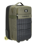 Introducing the Horizon Wheelie Luggage Bag in Black Omniphase from Quiksilver - your ultimate travel companion. Made from 100% recycled polyester, this eco-friendly luggage boasts two main sandwich compartments and a compression strap to keep your belongings secure and organised, while also providing effortless mobility with convenient carry handles. With two front zipped pockets, including one that you can easily fits your laptop into, you'll have easy access to your essentials on the go.