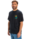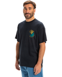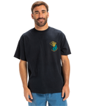 The Quiksilver Mens Hypnotic Wave T-Shirt in Black combines effortless style with bold, eye-catching design. Offering a relaxed and comfortable fit, this tee is perfect for those laidback days. It will look fresh even after repeated wears thanks to the durable rib detail. The heavy wash treatment gives the shirt a vintage, well-worn feel, adding to its casual charm. Made from 100% organic cotton, it's soft, breathable, and eco-friendly, making the Hypnotic Wave T-Shirt a standout addition to your wardrobe.