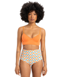 The Quiksilver Melly Bikini Top in Coral Gold is your go to choice for versatile and stylish swimwear.
