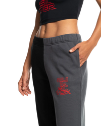 Take chilled out styling to the next level with the effortlessly cool Quiksilver Womens Stranger Things Upside Down Fleece Joggers in Black. In one of the most exciting collaborations of the year, Quiksilver’s latest is inspired by Stranger Things, the hugely popular science fiction television series set in the fictional rural town of Hawkins, Indiana. Whether you’re out exploring unusual supernatural events with friends or you’re just chilling out, the Stranger Things Upside Down Fleece Joggers have all the style and comfort you need. Crafted with a super soft super soft fabric and elasticated hems and waistband, the simple but stylish design allows the joggers to be styled with any T-Shirt or top in your.