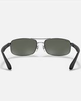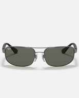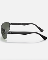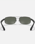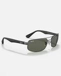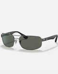 The RB3445 Sunglasses from Ray-Ban offer the best of both worlds, protection and fit. Ideal for most face shapes, these unisex sunglasses, sit comfortably while the steel double brow bar is complimented by rubber inserts on the temple tips allowing for a more secure fit. The elbow wrapped plates hide hinge hardware while allowing frame design to flow cohesively fitting your face like a glove. An engraved silver Ray-Ban signature decorates the curved temples.
